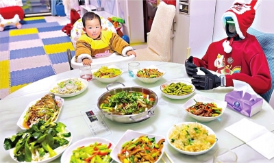 机器人坐上陈警家的团年饭桌。 |
