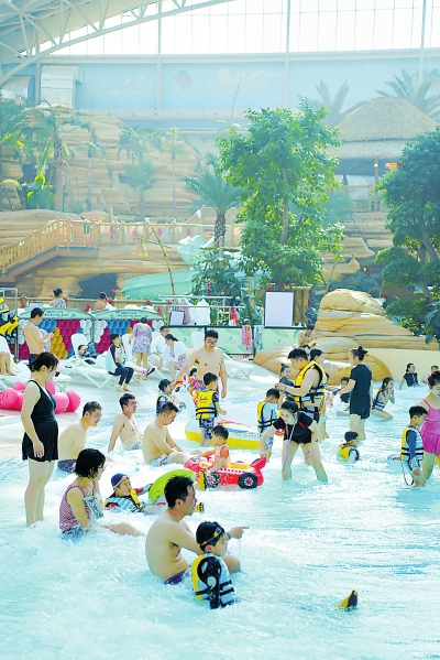 武汉城建开元森泊度假乐园四季恒温水乐园保持着30℃,玩水的家庭游客占比超八成。 通讯员胡晓倩 摄 |