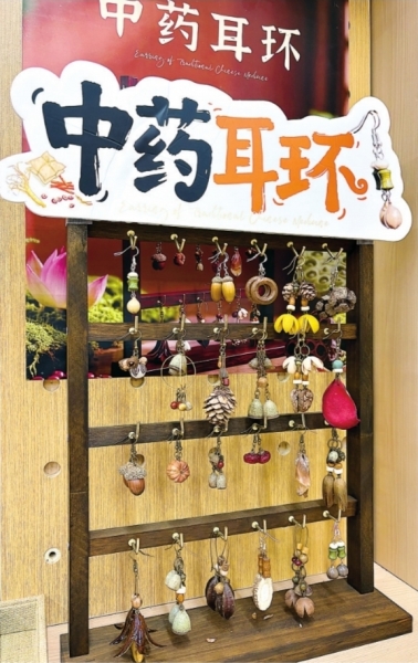 叶开泰草本茶咖店的中药耳环。 长江日报记者刘晨玮 摄 |