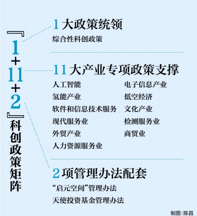 为加快推动创新链与产业链深度融合,东西湖区已构建以综合性科创政策为统领,面向人工智能、电子信息、氢能等11大产业专项政策为支撑,以“启元空间”管理办法和天使投资基金管理办法为配套的“1+11+2”政策矩阵,对科创主体的支持从“点状输血”迈向“制度性造血”。