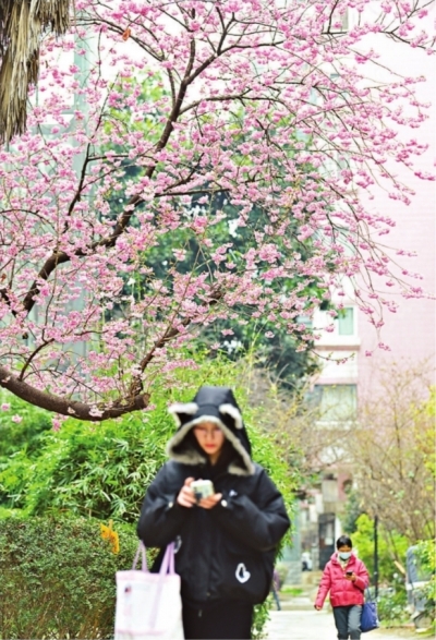 武汉市园林科学研究院高级工程师董立坤介绍,受去年夏季持续高温干旱及秋冬气温偏暖影响,今年武汉早樱普遍较往年提前半个月左右开放。“往年早樱一般在3月初盛开,而今年2月下旬就已进入花期。”当前天气非常有利于樱花开放。董立坤表示,近期日均气温稳定在10℃左右,若后期气温升至20℃,将进一步加速开花进程;若气温保持平稳,预计3月中旬将迎来中樱的集中盛放期,届时全城将进入最佳赏樱时段。
