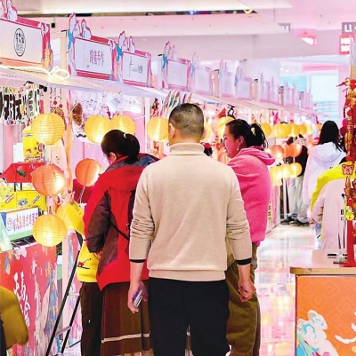 武昌万象城西馆L1中庭天马庙会非遗市集的文创品深受年轻消费者青睐。 |