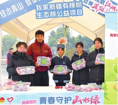 2025年3月5日,武汉市生态环境局青工委组织了一场“品果分享会”,摆在大家面前的是一颗颗鲜红的海棠果。这些海棠果来自博乐市,一年前,这个单位的青年认捐下125棵海棠树苗。