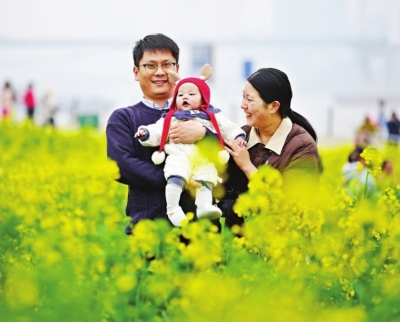 油菜鎏金 不少游客趁着周末,徜徉在武昌江滩铁机路段灯塔下的油菜花田里。 长江日报记者何晓刚 摄 |