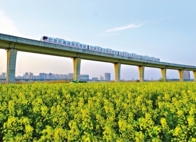 一路繁花 地铁16号线列车驶过沌口至小军山之间高架区段。 通讯员林奎 摄 |