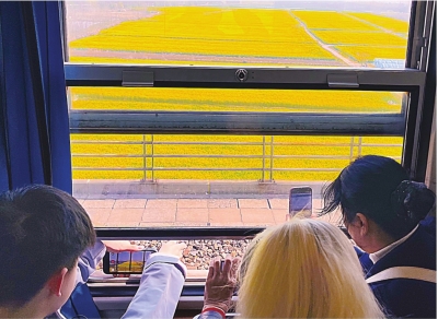 首趟列车满载800余名乘客,大家争相打卡拍照,沿途欣赏天兴洲油菜花、黄鹤楼、武汉长江大桥、晴川阁、龟山电视塔等城市地标。