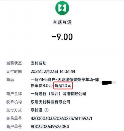 “我们扫码都不点广告,点直接付款就可以了。”小区物业经理表示,物业严格按照标准只收8元停车费,多出的1元可能是车主误点广告所致,费用未进物业账户。广告由停车系统服务商“一码通行(深圳)网络有限公司”自带,非物业植入。