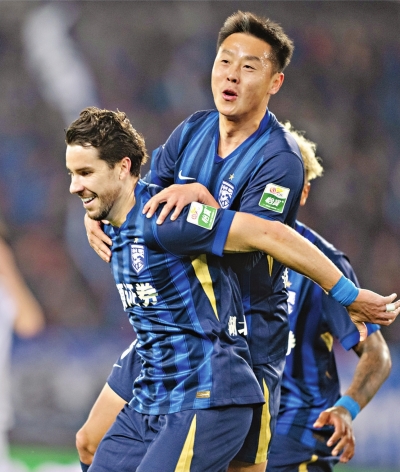 武汉三镇队外援绍尔(左)复出即建功。 新华社发 |