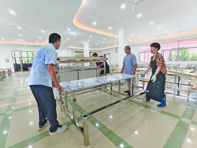 小图为食堂改造现场。(记者 蒋 瑜 摄)