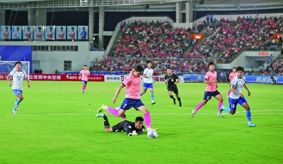 8月16日晚,2025江苏省城市足球联赛第九轮无锡队主场对阵徐州队的比赛在市体育中心举行。在这场精彩的对攻大战中,无锡队作风过硬、战术得当,在困境中绝地反击,凭借补时阶段的破门,以3比3绝平强劲对手。