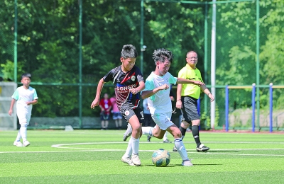 这群足球小将以苗族、侗族孩子为主,平均年龄不到12岁,是去年榕江县首届“班超”冠军球队。此次宜兴之行对他们来说,是第一次走出大山,也是第一次在江南感受专业足球赛场的氛围。8月16日上午9点,在市周铁久滕足球俱乐部,一场由市东域小学小球员对战榕江小将的友谊赛开赛(如图)。绿茵场上,孩子们肆意奔跑,一开场就全力抢球。榕江小将带着韧劲冲锋,东域小学小球员则展现细腻技术,球权在两队间快速轮换,每次抢断、传球都引来场边阵阵喝彩。上半场临近结束时,榕江小将们的队长、12岁的姜宥权抓住任意球机会成功破门。赛后,满头大汗的姜宥权笑着说:“宜兴队员水平很高,传球又快又准。能进球,是因为这片草坪和家乡的草坪脚感一模一样。”原来,去年威腾体育就向他们学校捐赠了草坪,让孩子们告别了坚硬水泥操场,用上了专业绿茵场。11岁的前锋杨志权也是场上的积极分子,休息时他告诉市融媒体中心记者,三天前得知要来宜兴踢球、看苏超,他激动得彻夜难眠,反复想象这里球场的样子。“踢了这次友谊赛,更期待晚上的苏超了。”杨志权表示。