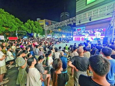 本报讯(记者汪佳璐 尚 高 等/文 记者鲍祎珺 蒋 瑜 通讯员丁焕新/摄) 苏超赛事点燃陶都夏夜!8月16日晚,市体育中心赛场内,球员们攻防交锋、奋力角逐,观众们加油声一浪高过一浪;赛场外,“第二现场”观赛点的呐喊与欢呼同样热烈(如图)。这些由市相关部门和商家等联动打造的点位,将美食、市集、文创等元素与足球激情深度融合,邀市民共赴一场“观赛+消费”狂欢。