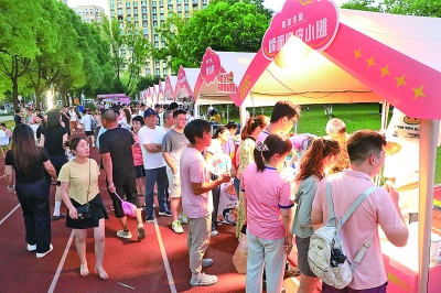 本报讯(见习记者张 蔷/文 通讯员丁焕新/摄) 上周,在市体育中心,场内苏超无锡队与徐州队的对决点燃全城激情,场外于8月15日—16日举办的“陶淘市集”同样人气爆棚(如图)。100多个摊位汇集了徐州、宜兴以及新疆阿合奇、连云港灌南、陕西延长等地的美食和文化,两天共带动消费超30万元。