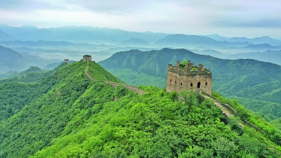 图为8月18日清晨在北京市密云区古北口镇拍摄的司马台长城(无人机照片)。 (新华社发)
