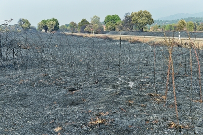 图为8月18日在西班牙卡塞雷斯省拍摄的被烧毁的土地。 (新华社发)