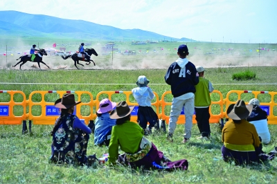 图为8月17日,观众在观看赛马。(新华社记者 齐芷玥 摄)