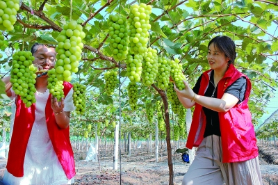 眼下,位于杨巷镇芳东村的无锡市好年景农业专业合作社内,70亩葡萄迎来采摘季。为及时供应市场,8月18日,该村志愿者纷纷来到合作社,帮着采摘、分拣、装箱,助力果农增收。