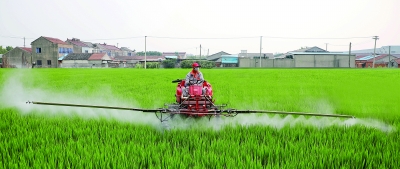 大图为8月21日,杨巷镇种田大户利用大型机械喷施农药。