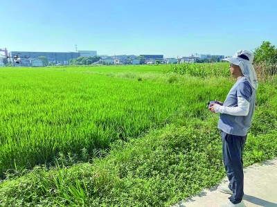 每年7月至8月,是农作物病虫害防治关键期,也是无人机飞防从业者最忙碌的时节。付家明介绍,相较于传统人工防治,无人机作业速度快、持续时间长,还能避免人在高温下接触农药的风险。“现在农田里使用的无人机大多是大疆、极飞等品牌,操作相对简单,配合自主飞行和AI大数据运算,能精准规划轨迹,在高温天里也能高效完成作业。”付家明说。7月以来,付家明和团队成员始终坚守在田间地头从事飞防作业,作业范围覆盖宜兴18个镇(街道),日均完成100到150亩的作业量,一天的工作时长长达10到12个小时。
