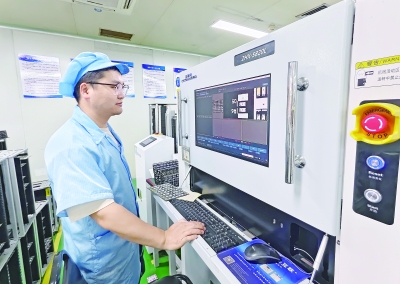 连日来,位于张渚镇的无锡市方舟科技电子有限公司电子元器件贴片车间内,多条生产线满负荷运转,全力赶制订单。今年,该公司加快推进产线自动化改造,新引进的多功能贴片机可同步贴装多种元器件,较传统单一贴片工艺效率提升200%。目前,企业合作客户涵盖美的、海信、西门子等国内外品牌,产品远销50多个国家和地区,今年以来订单持续保持稳定增长态势。 图为8月26日,工作人员正在检测贴片产品。(记者 蒋 瑜 摄)