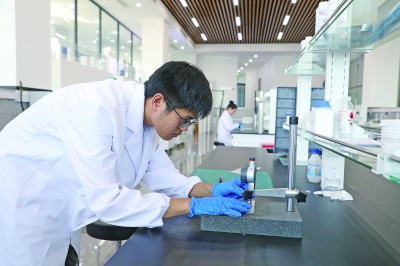 图为8月28日,该公司研究人员正在实验室内进行产品测试。