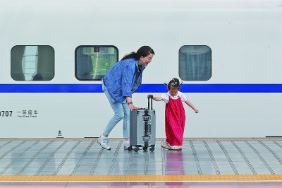 小图为当日,在江苏无锡火车站,家长带着孩子准备乘车。 (新华社发)