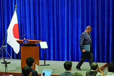 图为9月7日,日本首相、执政党自民党总裁石破茂在日本东京首相官邸出席记者会后离开。(新华社发)