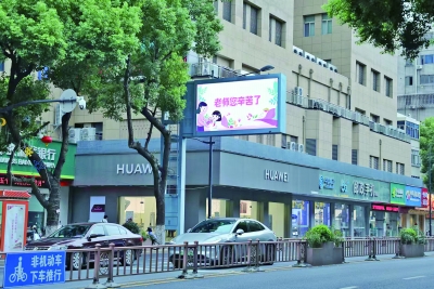 9月10日是第41个教师节。在昨天的城区部分亮化楼宇和沿路LED立屏上,纷纷亮起“老师,您好!”“老师您辛苦了!”“教师节快乐!”等感恩话语,营造感念师恩、礼敬教师的浓厚氛围。(记者 翟霄帆 鲍祎珺 摄)