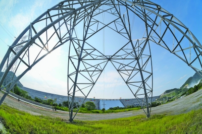 小图为当日在埃塞俄比亚本尚古勒—古马兹州拍摄的“复兴大坝”的输电线路铁塔。(新华社发)