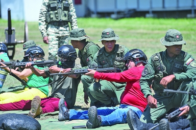 图为9月13日,委内瑞拉民兵在位于首都加拉加斯的蒂乌纳堡陆军基地进行射击训练。 (新华社发)