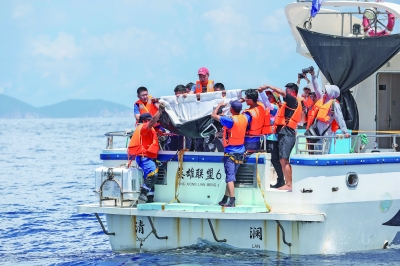 大图为9月14日,在海南万宁一处海域,救助人员准备放归海豚“万万”。