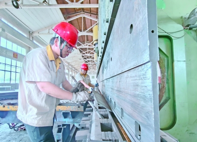 图为9月19日,工作人员在数控折弯机上作业。(记者 蒋 瑜 摄)