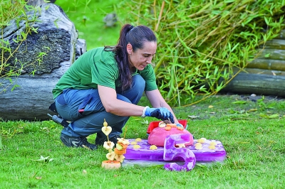 小图为9月20日,在西班牙马德里动物园,饲养员为大熊猫准备生日“蛋糕”。(新华社发)