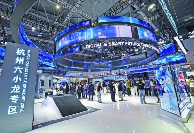 图为9月25日拍摄的第四届全球数字贸易博览会数智未来主题展区的杭州六小龙专区。