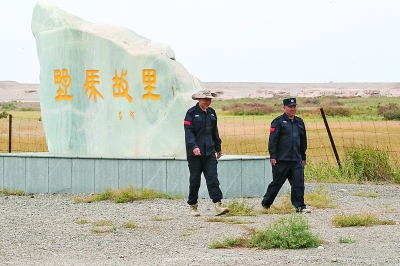 小图为9月24日,甘肃敦煌西湖国家级自然保护区管护中心玉门关保护站工作人员巡视保护区内普氏野马活动情况。 (新华社发)
