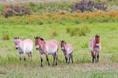 甘肃敦煌西湖国家级自然保护区总面积约66万公顷,拥有湿地、草地、林地与戈壁等多样生态系统,符合普氏野马最后生存区域的环境特征,被列为野化放归试验区。2010年和2012年,甘肃濒危动物保护中心转运28匹普氏野马,散放于敦煌西湖保护区内。得益于这里水草丰茂的环境,普氏野马自由繁衍生息,种群规模持续扩大。