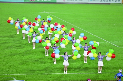 90多分钟较量,1比1战平,背后是燃到极致的拼搏。绿茵场上,足球好似一个欢快的精灵,在球员脚下不停穿梭,引得全场目光紧紧相随,始终绷紧神经。球员们的每一次奋力拼抢、每一次精准防守,都诠释着超越比分的热血斗志。看台上,球迷们热情高涨,加油助威声不时爆发、席卷全场,一次次将气氛推向高潮。开场与中场表演同样精彩,歌声激昂掀热浪,舞姿翩跹显活力,自行车队骑行展现“十三城一家亲”……一个个节目,将爱国情怀与城市特色深度融合。
