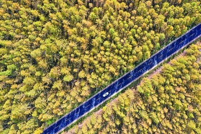 ?9月27日在吉林省安图县二道白河镇拍摄的G331风景(无人机照片)。 |