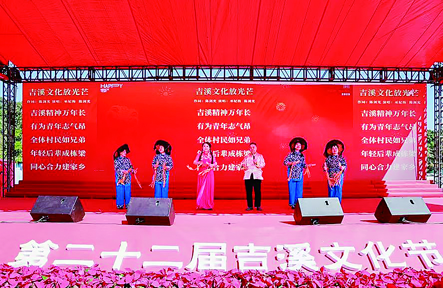 活动中,由吉溪居民、港澳同胞、海外侨胞自编自演的文艺节目合唱《共筑中国梦》、舞蹈《红日》、相声《故乡人说故乡》、客家山歌《吉溪文化放光芒》等畅述吉溪风情、港澳乡情、海外侨情,描绘广大归侨侨眷和海外侨胞发扬优良传统,奋进新征程、建功新时代的动人场景。活动现场还开展敬老活动,为吉溪老人送上慰问金;举行《吉溪风采》(续集)新书发布仪式,向传承吉溪文化的杰出单位和个人赠书。