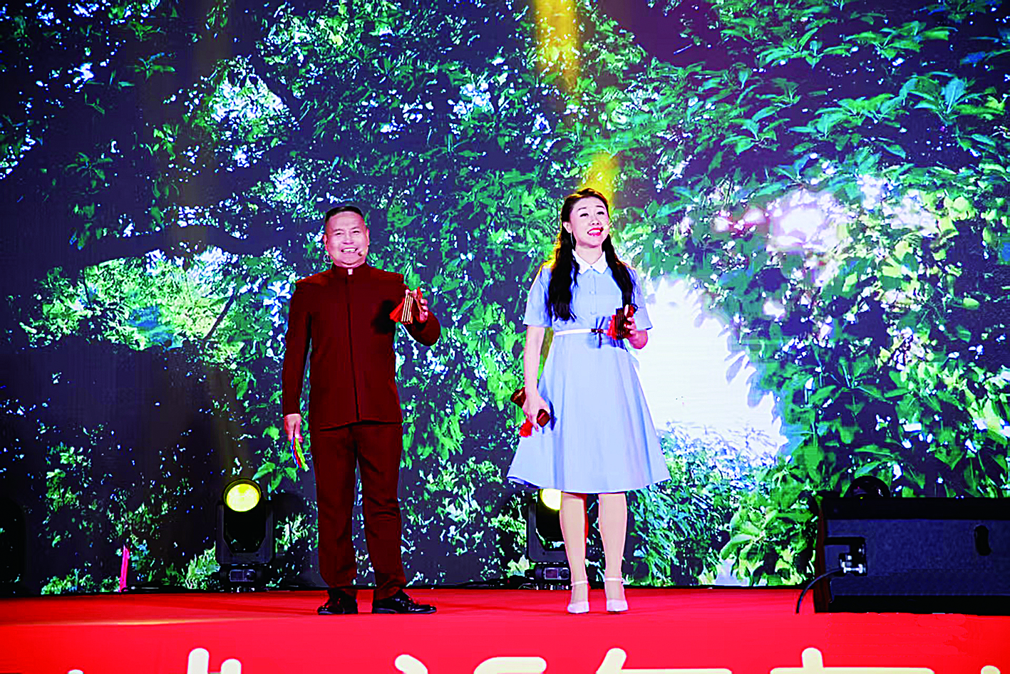 现场,龙岗区音乐家协会龙声民乐团携手平湖非遗“纸龙舞”表演队,为职工朋友们带来精彩的《金蛇狂舞》,乐师奏响新春乐章,队员们身姿矫健、舞步灵动,以一幕祥龙腾飞、金蛇狂舞的壮观场面拉开了晚会的序幕。随后,非遗表演、民乐演奏、歌伴舞、舞台剧、相声小品、舞蹈、音诗画朗诵、快板表演、工间操表演、互动魔术等形式多样的节目连续上演,生动展示了龙岗区广大职工才艺与风采,充满了迎新春的喜庆氛围。其中,由龙岗区保安服务有限公司工会张二楞创作的快板《大榕树下是我家》成为全场亮点。这部原创曲艺作品以其生动的情节、欢快的节奏和贴近生活的题材,赢得了现场领导、嘉宾以及观众朋友们的喜爱和热烈掌声。