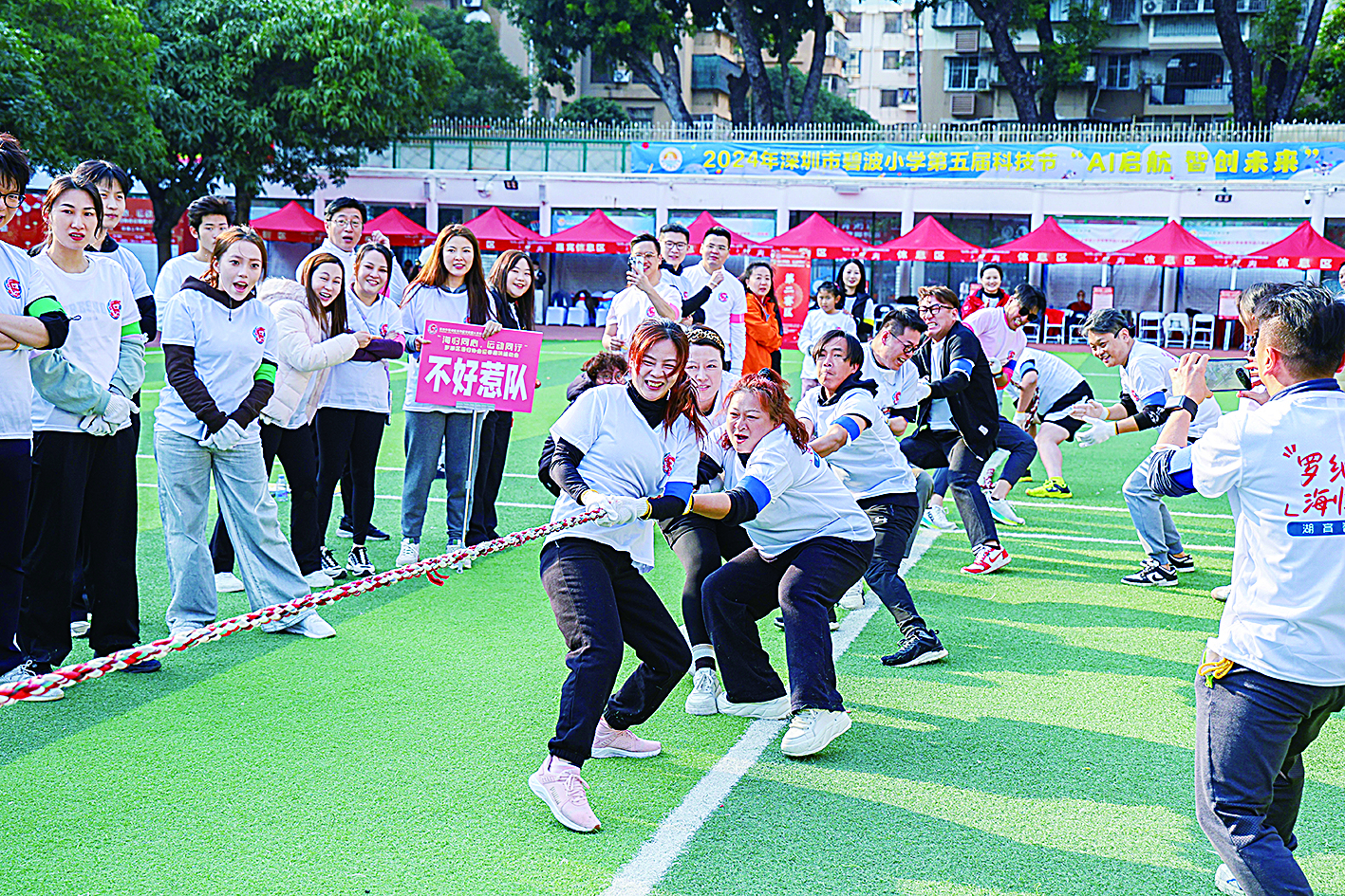 近日,罗湖区海归青年“海归同心 运动同行”迎春趣味运动会在深圳市碧波小学运动场上欢笑开幕,海归青年们齐聚于此,以体育运动共迎新春佳节。