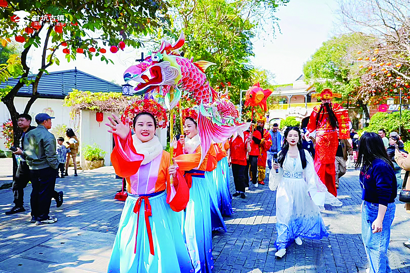 甘坑古镇凤凰谷客家庙会,新年迎春仪式、鱼灯舞、古风杂技惊艳街头,掀起传统民俗热潮;承载着各地游客的“红胖子”旅游巴士在街道上往来行驶,为城区增添了别样的活力;探秘龙岗文博展览馆,领略玉器珍品之美,追寻深厚文化底蕴……