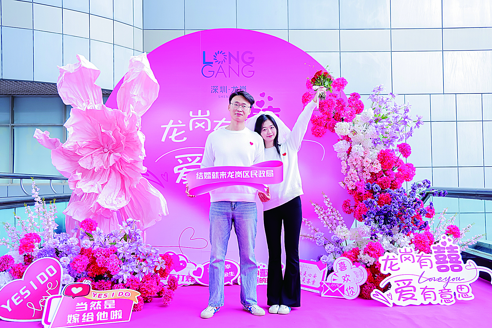 本报讯 (龙岗融媒记者 陈英东 通讯员 方子瑜) 昨日恰逢元宵佳节,龙岗区民政局牵头组织开展“龙岗有囍,爱有意思”婚姻登记主题活动,邀请众多有情人以爱的名义共赴浪漫之约。此次活动持续至2月21日,精心策划三大亮点环节,旨在让每一对前来登记的新人都能感受到满满的仪式感。
