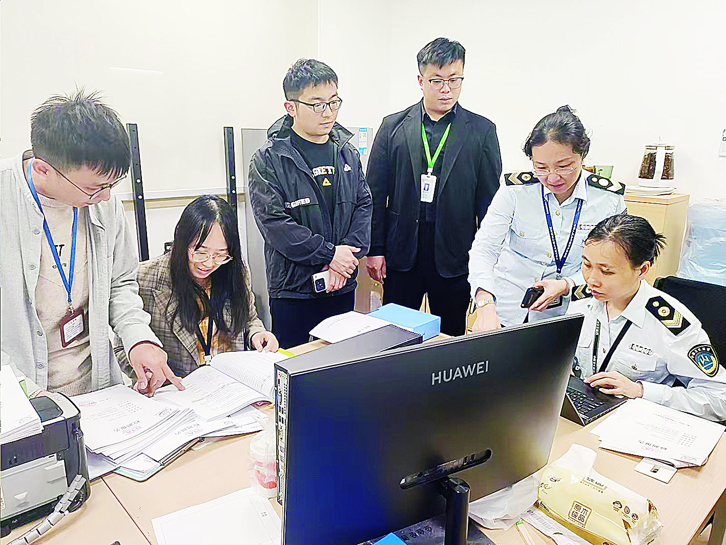 龙岗管理局与龙岗区卫生健康局执法人员现场联合评估医院医疗废物废水规范化管理情况。龙岗融媒记者 李虹莹 摄