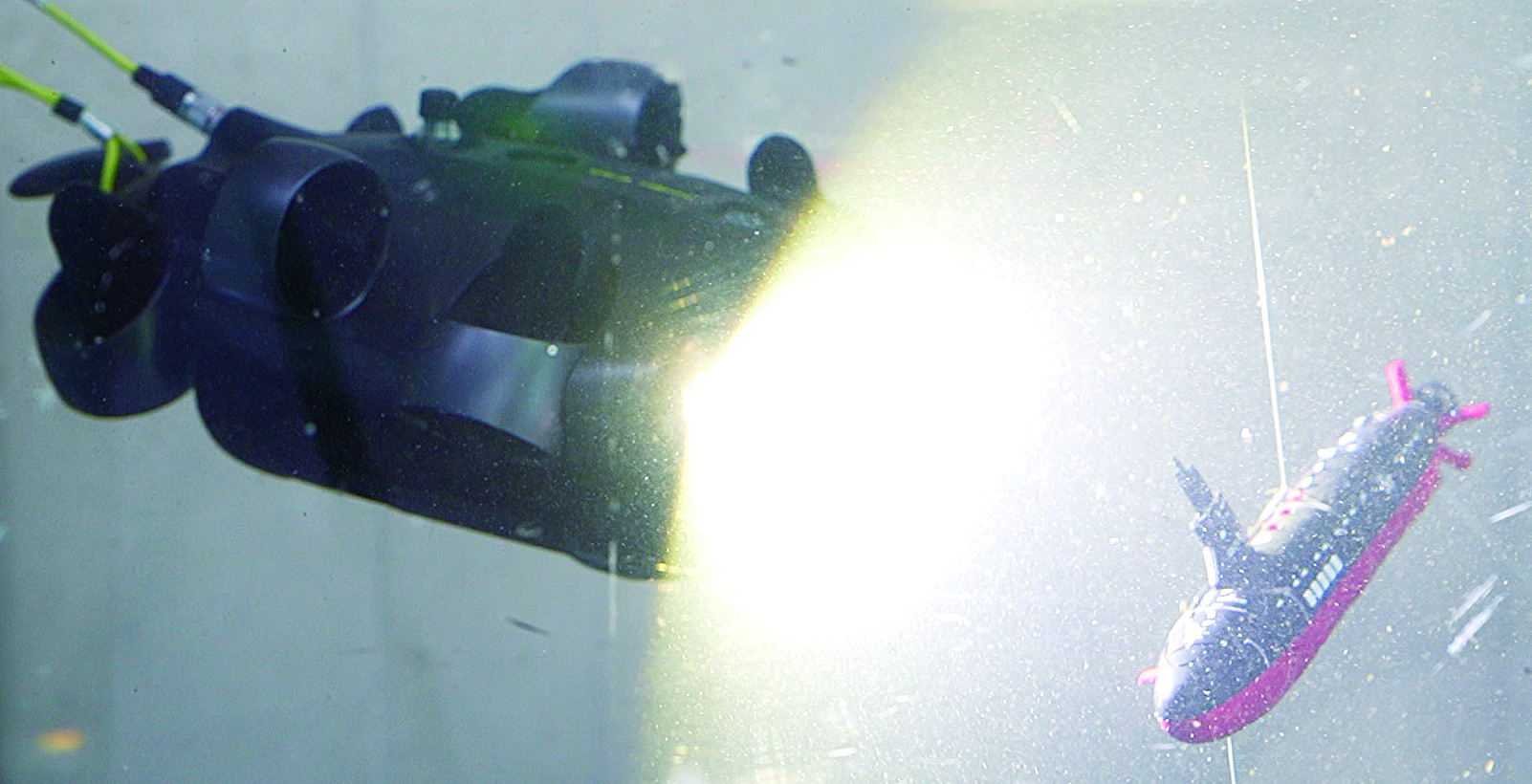 作为首部潜艇题材电影,《蛟龙行动》在创作的各个环节都面临巨大挑战,尤其是大量的水下拍摄场景,成为创作团队必须攻克的难题。摄影指导鲍德熹在接到拍摄任务的前四个月,就开始考虑使用水下遥控操作机器辅助拍摄。一次偶然的机会,他了解到龙岗企业鳍源科技的水下机器人,随即展开测试。