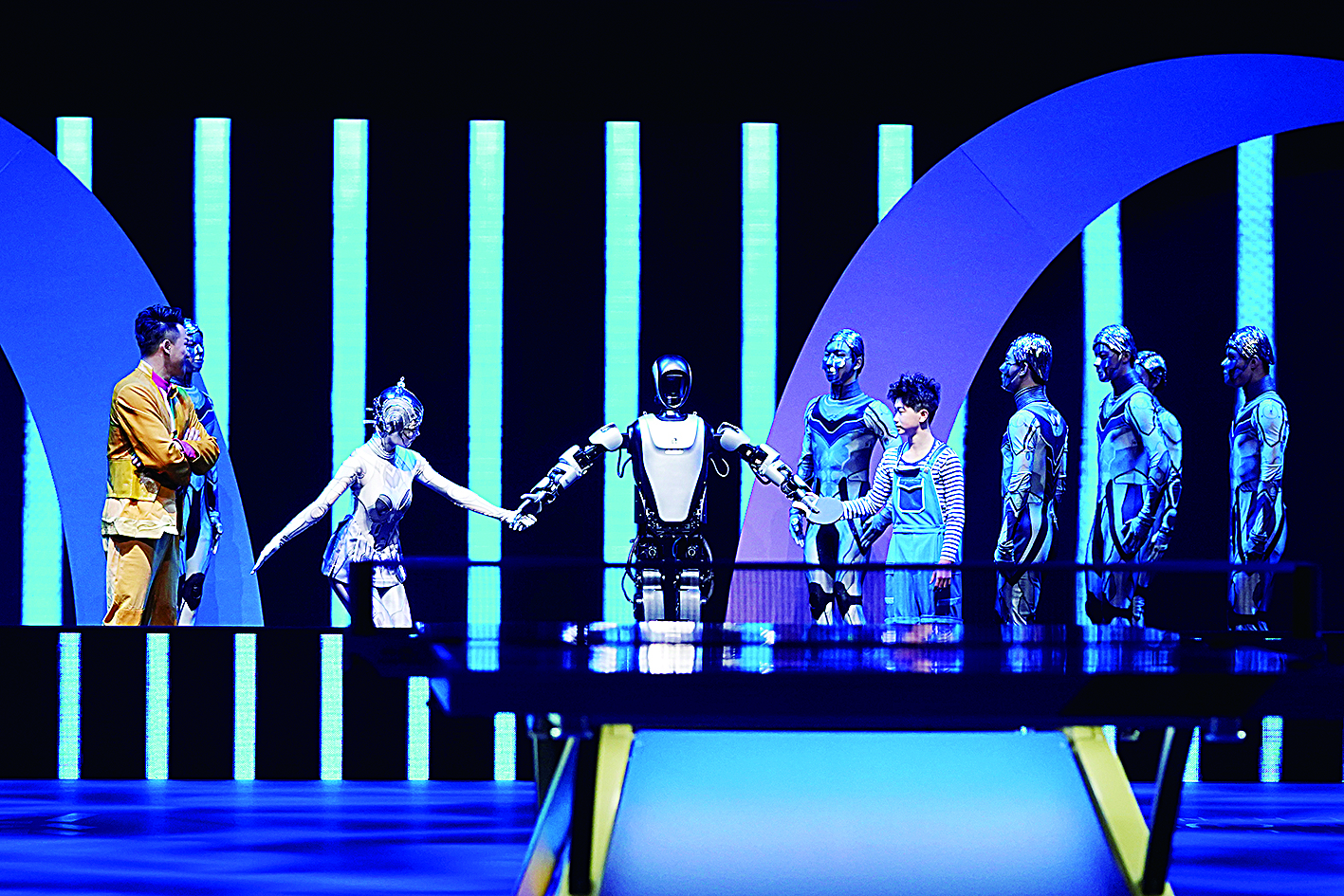 开幕式表演《深 AI 乒乓》改编自深圳原创出品的中国首部人工智能题材舞剧《深 AI 你》。舞台上,街舞与乒乓球拍的挥动轨迹巧妙结合,科技与体育相融合,赋予传统体育新活力。