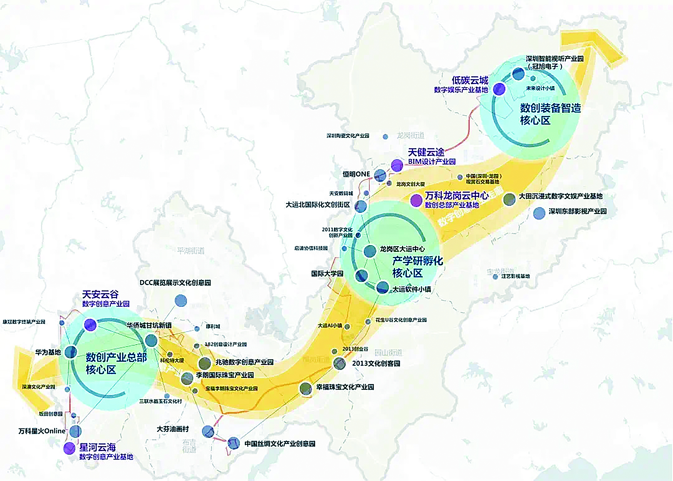 在人才政策方面,龙岗区出台数创产业人才扶持条款,设立“影视人才专项奖励”,为符合条件的影视人才提供住房补贴,解决后顾之忧,为产业持续发展提供人才保障。在技术赋能产业升级方面,龙岗区与华为公司共建华为(龙岗)数字创意产业创新中心,该项目是华为公司在全国范围内首个数字创意产业方向的创新中心,计划四年投资1.5亿元,将依托华为在品牌、技术、生态资源等方面的优势,搭建数字创意服务云平台,服务龙岗区影视游戏、创意设计等数创产业快速发展。该平台通过生成式人工智能(AIGC)、云渲染、远程协同制作等云服务技术,有效赋能影视作品的生产制作。