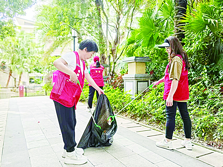志愿者在小区清扫垃圾。龙岗融媒通讯员 高少元 摄