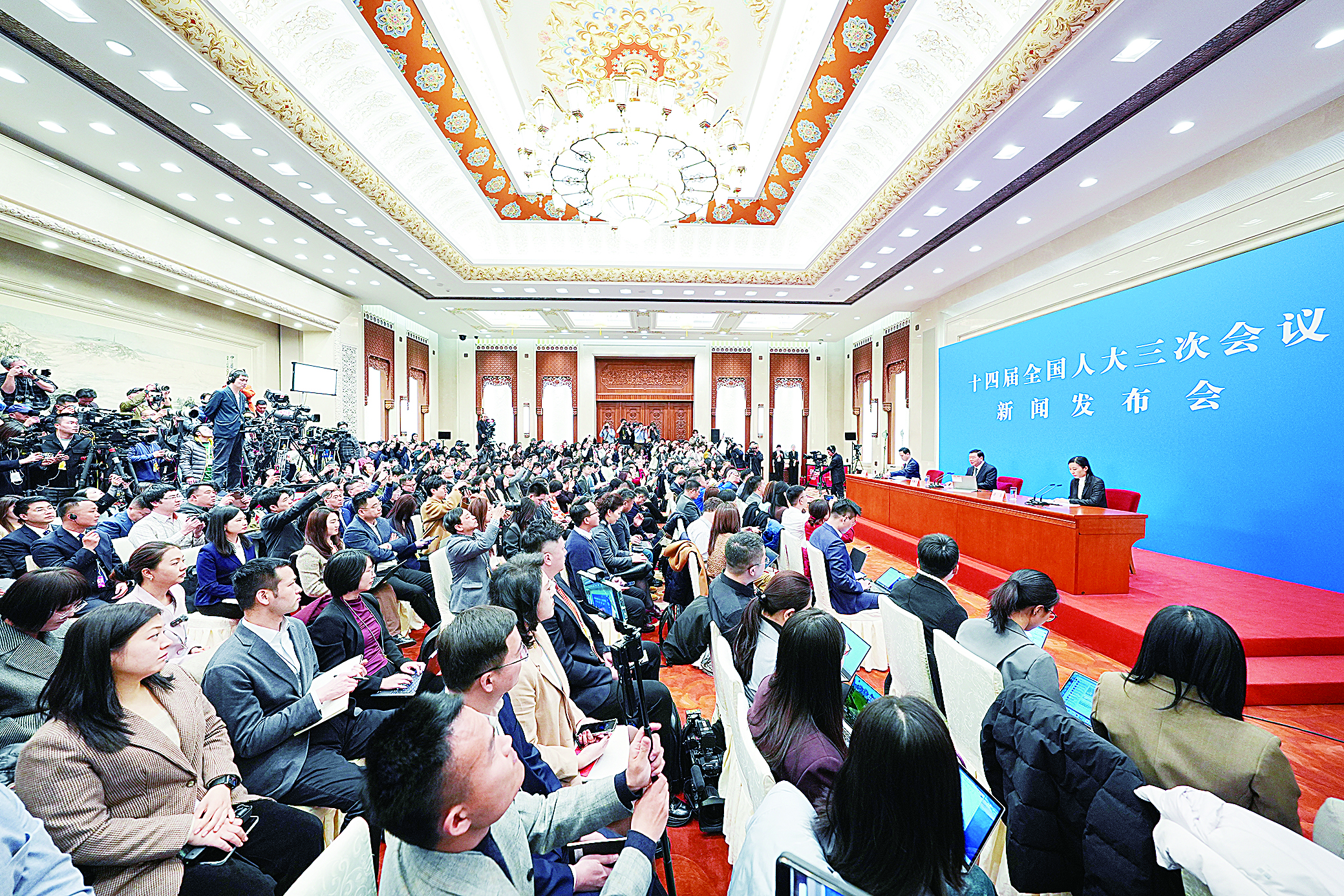3月4日中午12时,十四届全国人大三次会议举行首场新闻发布会,大会发言人娄勤俭回答了中外记者关注的立法工作、人工智能、粤港澳大湾区建设等热点问题。