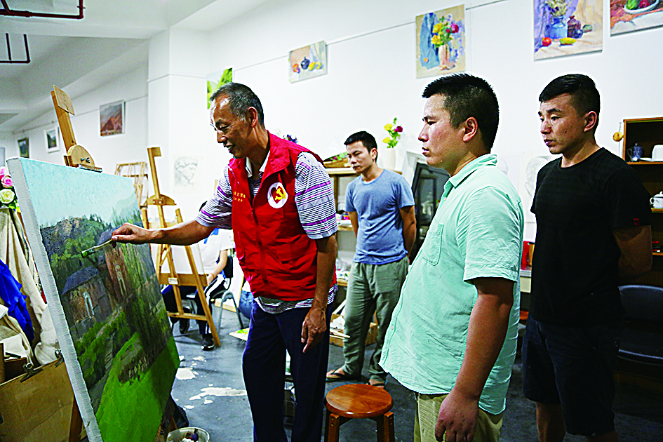 “壹贰·叁”是大芬村一间特殊的画室,名字的来源正是12月3日国际残疾人日。园区党委书记、关工委主任蒋庆北是画室创办人,谈及成立这个画室的初衷时,他很实在地说,“授人以鱼,不如授人以渔”。正是凭借着这份初心,在蒋庆北的带动下,李济勇、李铁香、谢非、王同行、尚波等一批“五老”画家积极加入,一个10人左右的美术专业“五老”工作团队正式组建,也开启了一段17年的关爱帮扶之旅。截至2024年10月,该工作室累计为120余名学员提供免费培训,也为这些特殊青年画者插上了梦想的翅膀。
